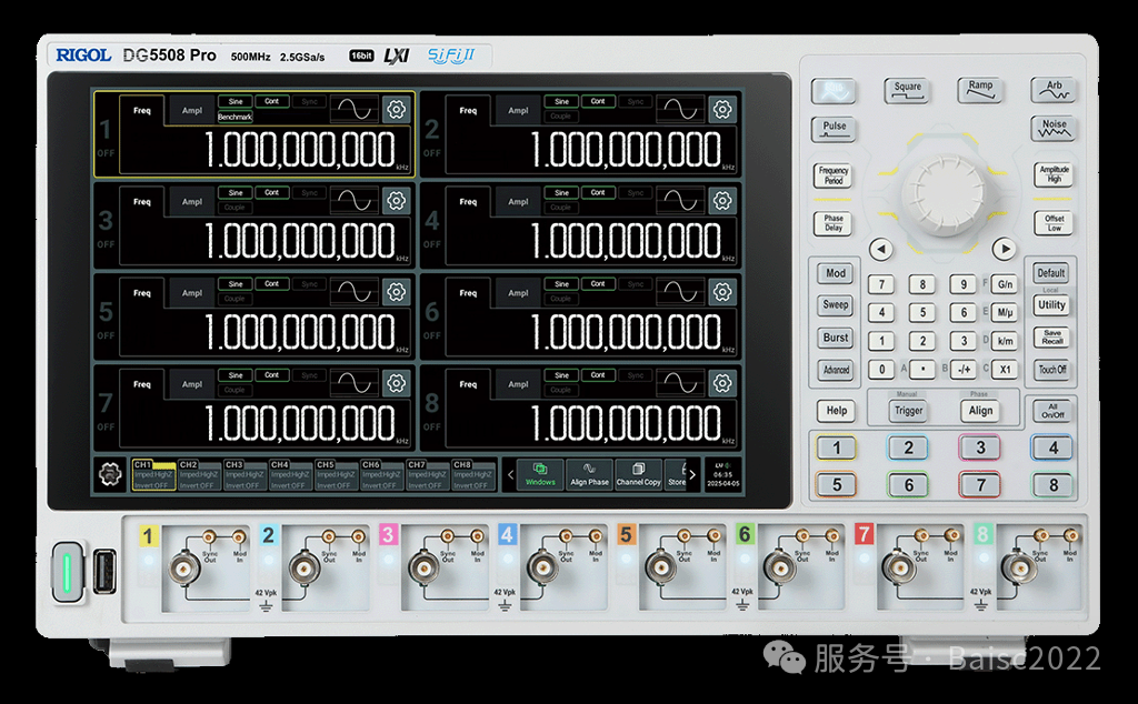 202578日,普源精电RIGOL)发布DG5000 Pro多通道波形发生解决方案以及SPQ数字化阵列测控系统,帮助客户应对更多复杂测试场景。