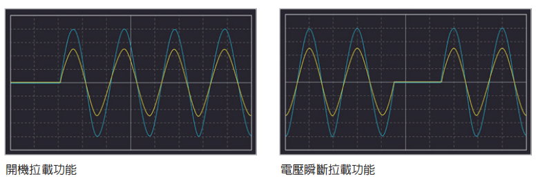 Chroma 61809/61812/61815回收式交流负载支持待载开机,且提供可测试电压源瞬断的Stand-By功能。在机器Load On后,可依电压源的启动或瞬断重启,做对应的即时拉载。可用来测试逆变器或不断电电源,在开机、电压瞬断或电压DIP等条件下拉载的承受能力。