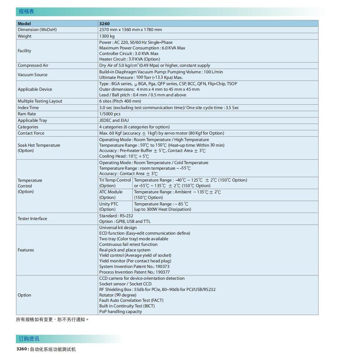 名  称:自动化系统功能测试机MODEL 3260